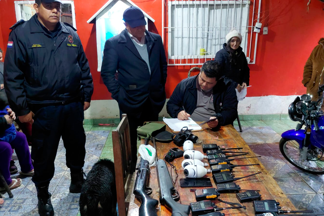 Presidente Franco. Durante un allanamiento por la desaparición de un joven de 25 años, agentes fiscales y policiales incautaron armas caseras, radios y cámaras de vigilancia. El procedimiento tuvo lugar este jueves 24 de julio a las 16:00, en una vivienda ubicada a orillas del río Paraná, en el barrio Tres Fronteras.