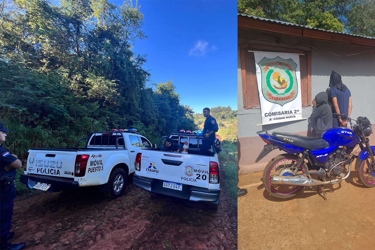 CIUDAD DEL ESTE. Dos personas fueron aprehendidas en flagrancia por hurto y recuperaron una motocicleta robada. El procedimiento se realizó este jueves a las 09:00 en el Km 10 Monday fondo, luego de un rastreo satelital.