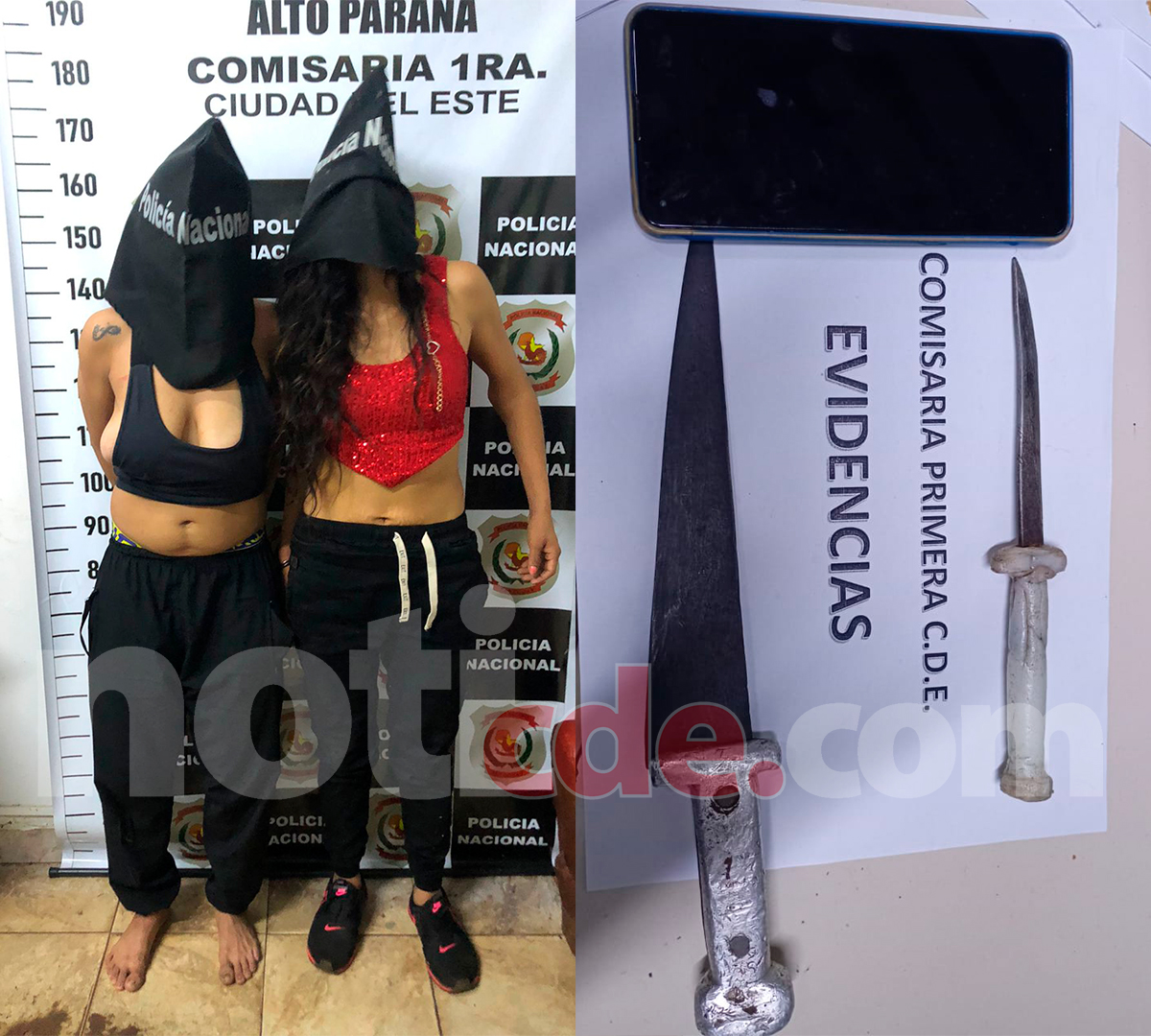 Las aprehendidas son Luján Alexandra Fernández Ruiz (26) y Estela Brítez Rojas (25), quienes no contaban con documentos y fueron encontradas en posesión de dos cuchillos de fabricación casera y un celular Samsung modelo A21S, robado momentos antes.
