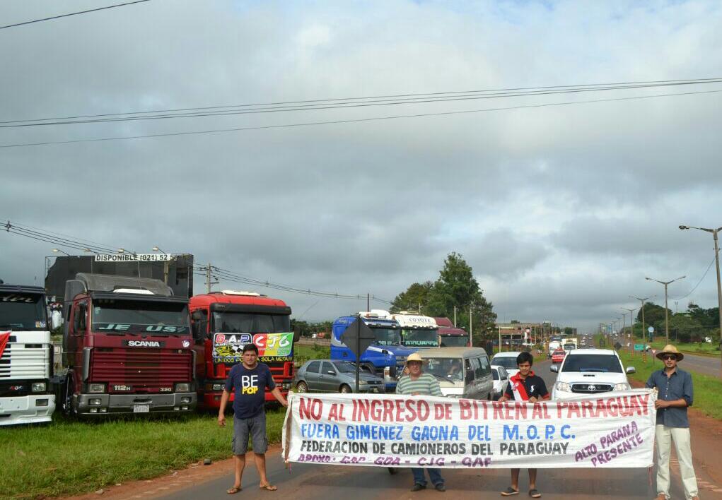 Desde la semana pasada camioneros se movilizan en diferentes puntos del departamento del Alto Paraná en rechazo el ingreso el país de los bitrenes desde el Brasil, para la zafra sojera, sumándose así a la protesta que se realiza a nivel país.