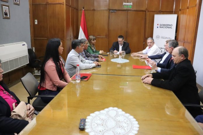 Una comitiva de autoridades del departamento de Alto Paraná, liderada por la ministra de Trabajo, Carla Bacigalupo, mantuvo esta mañana una reunión con el viceministro de Obras, Rubén Andino, a fin de repasar proyectos de conectividad en la zona.