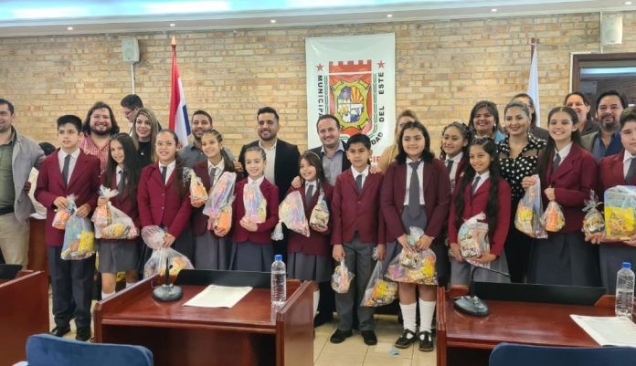 Los escolares fueron recibidos por los ediles, quienes hicieron entrega de regalos al finalizar la visita.