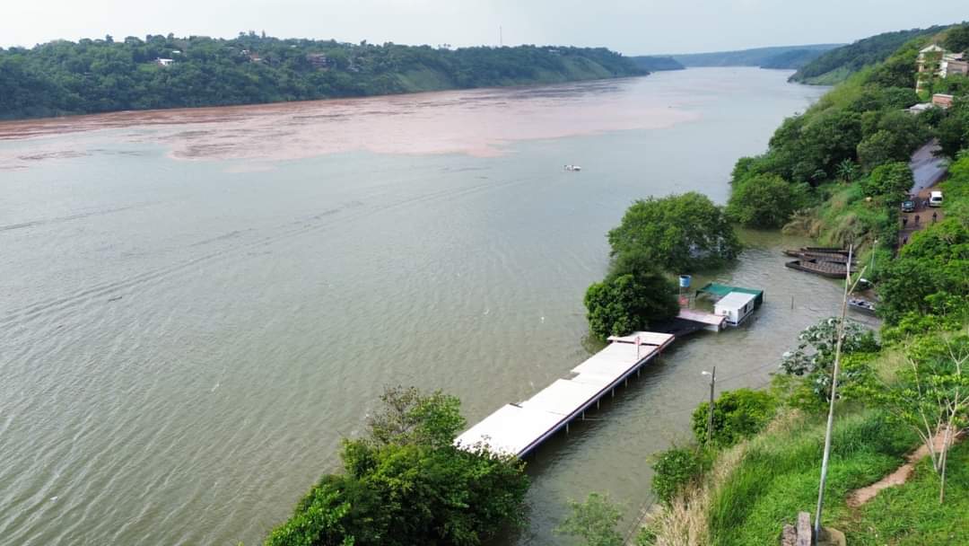 Al otro lado del río, en el puesto de control aduanero de Puerto Iguazú, Argentina, está ocurriendo la misma situación, y los funcionarios de varias reparticiones fronterizas tuvieron que abandonar la zona debido al avance de las aguas del río Yguazú, que también está completamente desbordado.