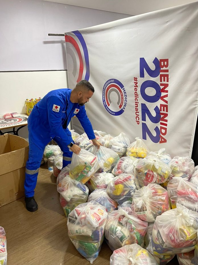 Asimismo, alumnos de la UCP recorren los pasillos de la universidad con las alcancías de la Cruz Roja Paraguaya para recoger los donativos de alumnos y docentes.