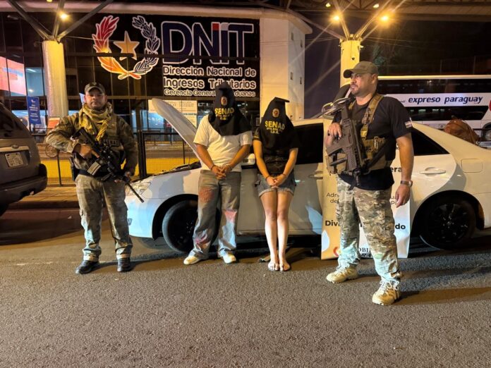 Durante el procedimiento fue incautado un Toyota Allion, cuya matrícula no correspondía al vehículo utilizado. Asimismo, fueron aprehendidos Alexander Ramón Alcaraz Mora y Angélica Liliana Konflanz Salinas, quienes quedaron a disposición del Ministerio Público.