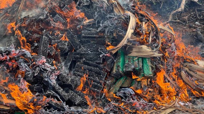 La Unidad Especializada en la Lucha contra el Narcotráfico, a cargo del fiscal Elvio Aguilera Vázquez, y agentes de la Secretaría Nacional Antidrogas (SENAD), llevaron a cabo este miércoles 18 de julio la destrucción de un importante cargamento de marihuana.