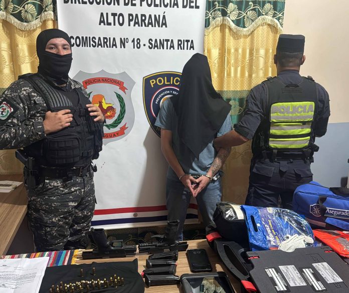 Un hombre con antecedentes por estafa y una orden de captura vigente fue detenido este martes en Santa Rita tras una persecución policial. En su poder fueron halladas armas de fuego y una camioneta blindada.