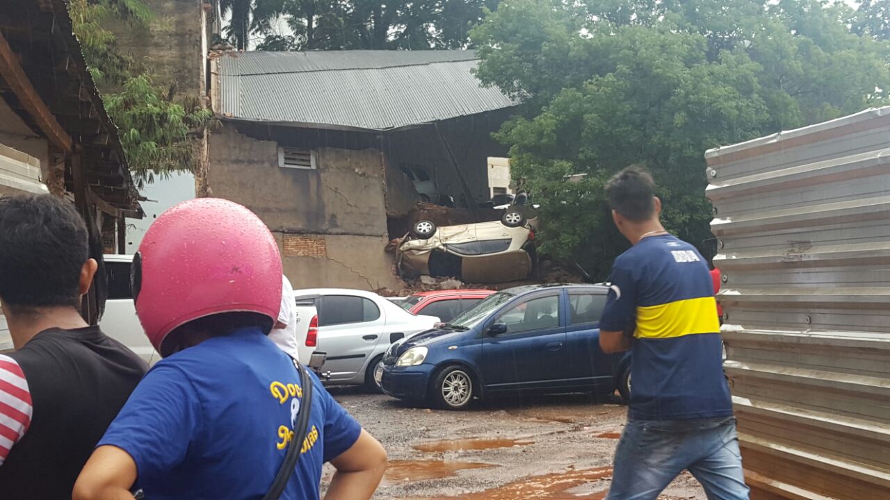 Al menos diez vehículos resultaron seriamente dañados en el derrumbe del estacionamiento “San Blas”, ubicado en el microcentro de Ciudad del Este. El hecho sucedió durante la fuerte precipitación pluvial que se abatió sobre la ciudad en la tarde de este lunes.