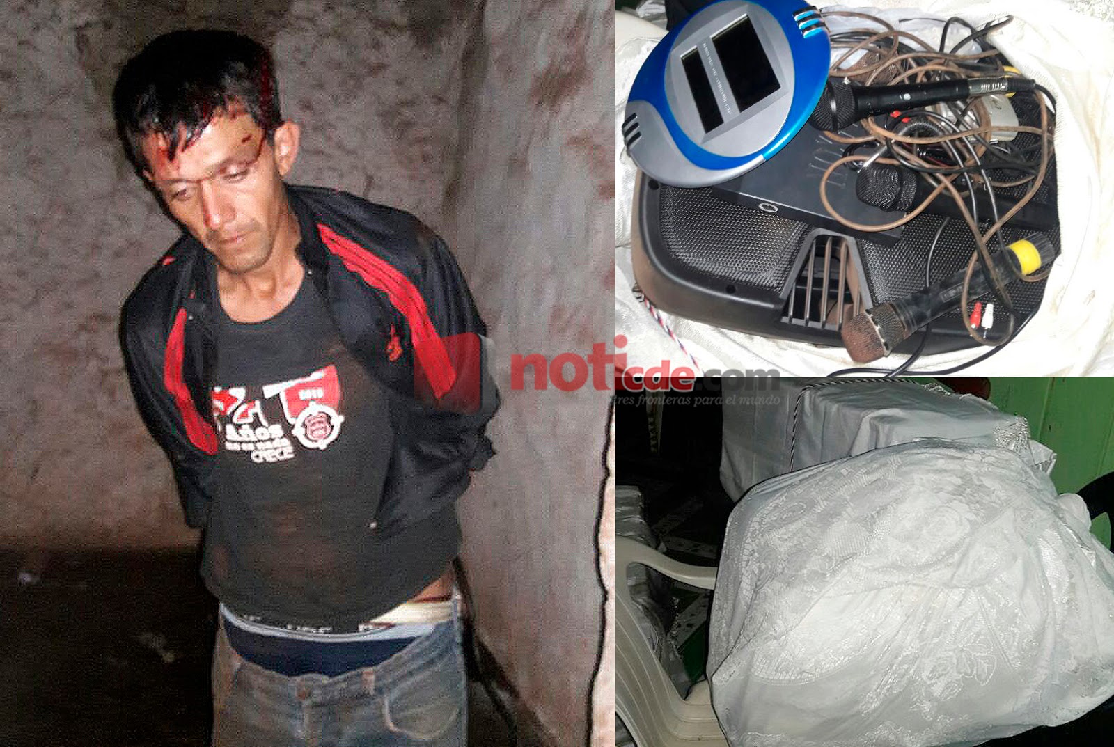 El citado fue sorprendido en el interior de la iglesia por los vecinos y sometido a una dura golpiza. En el lugar fueron encontrados varios objetos que el ladrón estaba preparando para llevar, entre ellos un bebedero, un DVD, un bafle, un reloj de pared, cuatro micrófonos y un cofre de ofrendas.