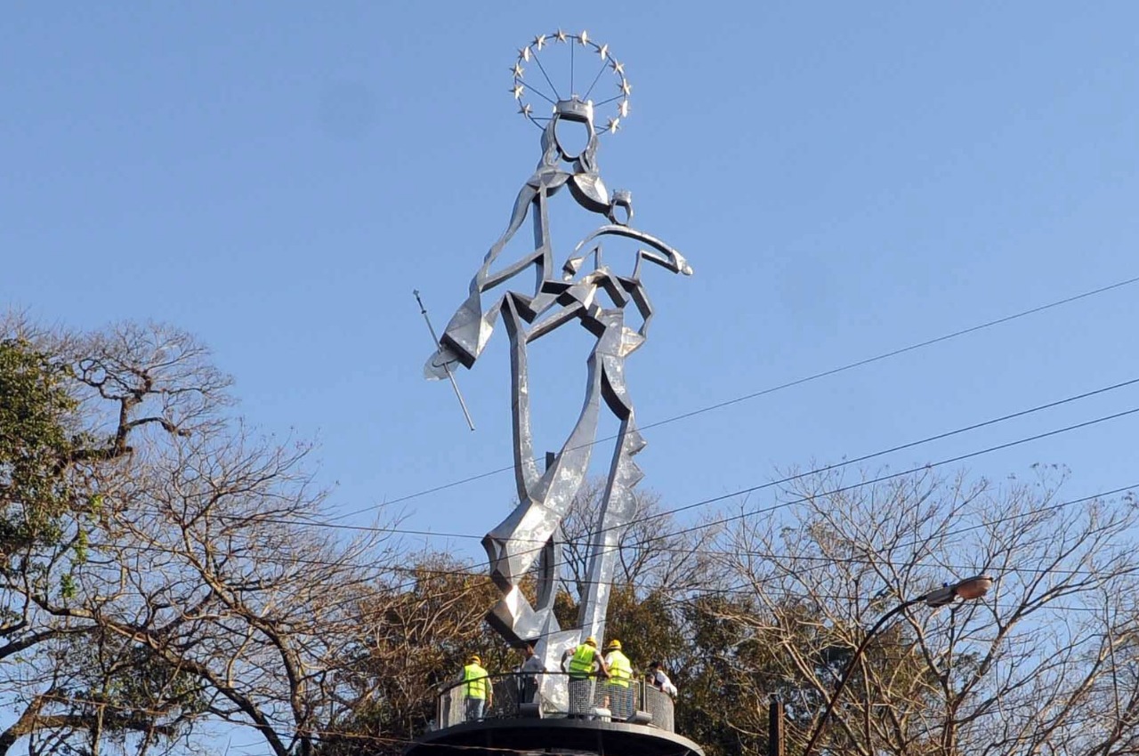 Es la mayor escultura de acero a nivel y para construirlo fue necesario el uso de 4.200 kilos de acero. La obra fue realizado por el escultor Diego Céspedes de la ciudad Luque, que tardó más de dos meses para tallar las piezas que luego fueron traídas y armadas aquí. El pasado 14 de julio, a las 15, fue colocado sobre la base con una grúa.