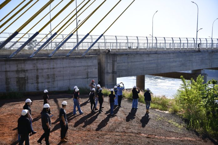 Los estudiantes de la carrera de Arquitectura de la Universidad Nacional del Este (UNE) tuvieron la oportunidad de visitar la construcción del Puente de la Integración, que unirá la ciudad de Foz de Yguazú (Brasil) con Presidente Franco (Paraguay), en la triple frontera. Esta visita técnica tuvo como objetivo observar la majestuosa obra que se encuentra en proceso de culminación.