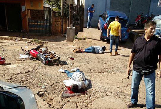 Luego de consumar los sucesivos atracos, los presuntos autores huyeron rápidamente del sitio; sin embargo, agentes policiales fueron alertados a través del Sistema 911 y comenzaron una persecución de los supuestos motoasaltantes. A algunas cuadras del lugar se produjo un enfrentamiento armado, ocasión en que falleció el brasileño Marcos Antonio de Almeida al recibir varios proyectiles. Mientras resultaron heridos Joâo Antonio de Almeida y Arnaldo Andrés Tindel Segovia. El primero fue socorrido y llevado al hospital, en tanto que el segundo pudo abordar nuevamente su motocicleta y escapar del lugar.