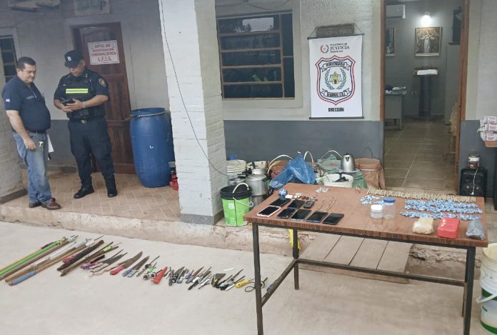 Una requisa realizada en la Penitenciaría Regional de Ciudad del Este permitió la incautación de drogas, teléfonos celulares y armas blancas en el pabellón B Alta, ocupado por integrantes del Primer Comando Capital (PCC). El operativo se llevó a cabo este lunes con la participación de agentes penitenciarios y efectivos antimotines.