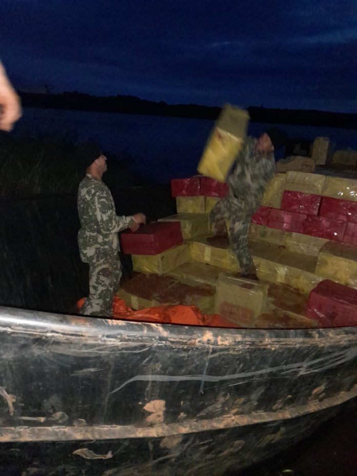 Personal de la Marina incautaron la semana pasada unas 35.000 cajetillas de cigarrillos de la marca Eigth, que se encontraban en una embarcación de metal, a orillas del río Paraná en la zona de Canindeyú.  La incautación es apenas para la “foto” y para alardear de un gran operativo desplegado contra el contrabando. Indicaron que, la pérdida oscila los 50 mil dólares.