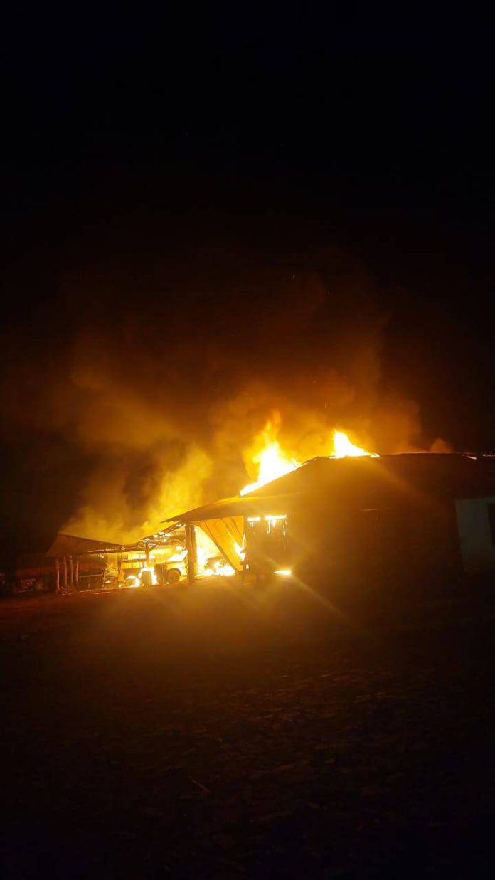 En el local que ardió en llamas había bidones de combustible y aceite, por lo que el fuego se propagó rápidamente.
