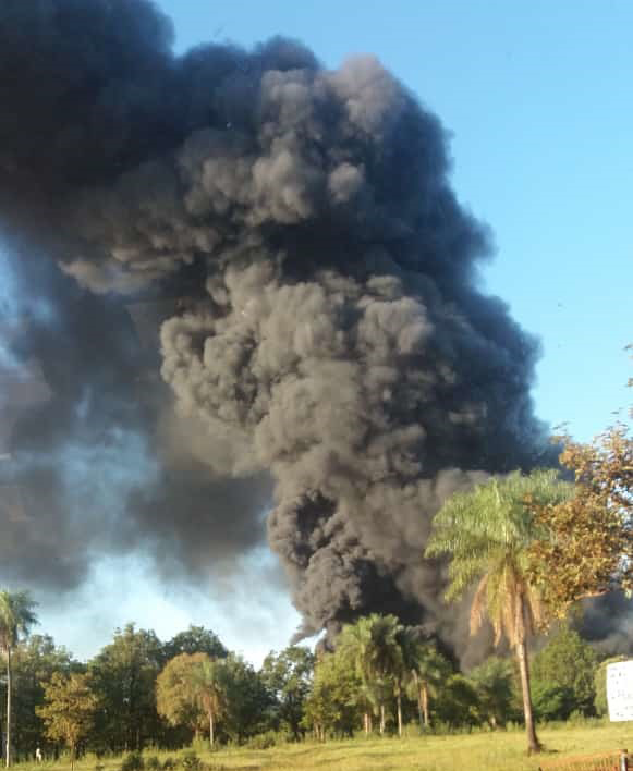 Una gran humareda se observa a lo lejos en la zona del kilómetro 20, distrito de Minga Guazú, lado Monday. De acuerdo a los primeros datos se trata de la quema de cubierta en la zona del antiguo vertedero municipal, según la denuncia de los vecinos.