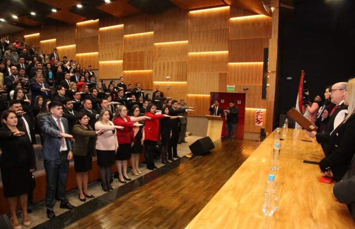 El presidente de la Corte Suprema de Justicia y Superintendente de la Circunscripción Judicial de Alto Paraná, Dr. César Diesel, tomó juramento a 77 nuevos abogados de Alto Paraná. El evento tuvo lugar este viernes en el Salón Auditorio del Centro de Convenciones del Palacio de Justicia de Ciudad del Este “Lydia Noemí Almada de Couchonal”.