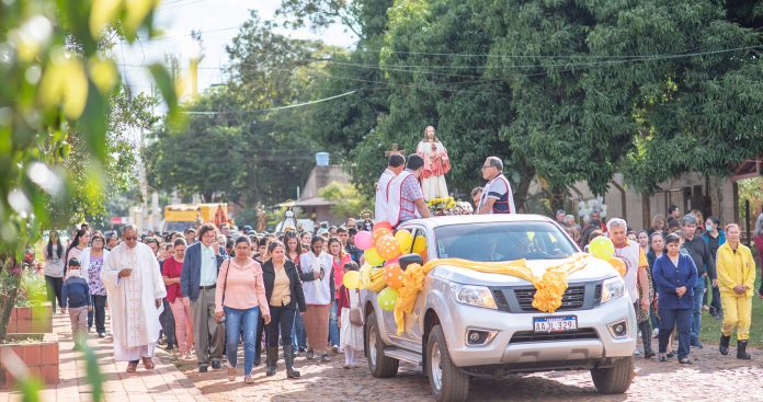 Las autoridades municipales, encabezada por el intendente Elvio Coronel, acompañaron la Santa Misa y la procesión. De igual manera, los representantes de diferentes instituciones públicas, Escuelas, Colegios, Comisaría, Cuerpo de Bomberos Voluntarios y otros. La fiesta continuó durante la jornada en el predio de la iglesia, con la presentación de varios números artísticos. También se llevó a cabo la venta de asado, tallarín de gallina casera y variedades de postres.