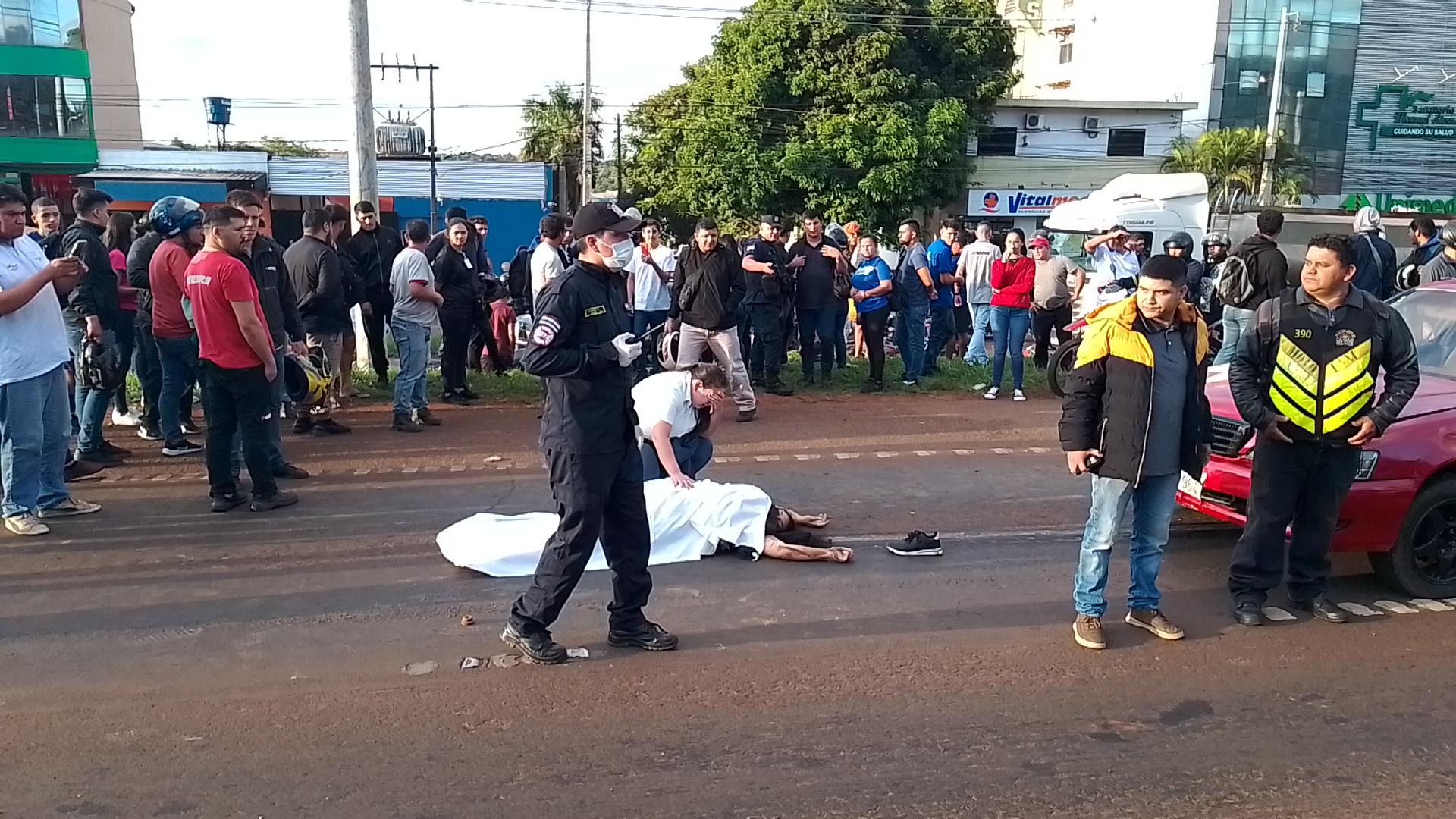 El hecho ocurrió alrededor de las 17:30 y la víctima fue identificada como Noelia Mercedes Cabral Escobar, domiciliada en el barrio Che la Reina. Según el informe de la Comisaría 4ª del barrio Pablo Rojas, la mujer cruzaba la ruta desde el paseo central hacia la acera cuando fue embestida primeramente por una motocicleta Kenton GTR, al mando de Hugo Richard Benítez Cabrera, y luego por un automóvil Toyota Cresta, guiado por Ever Hugo González Viera.