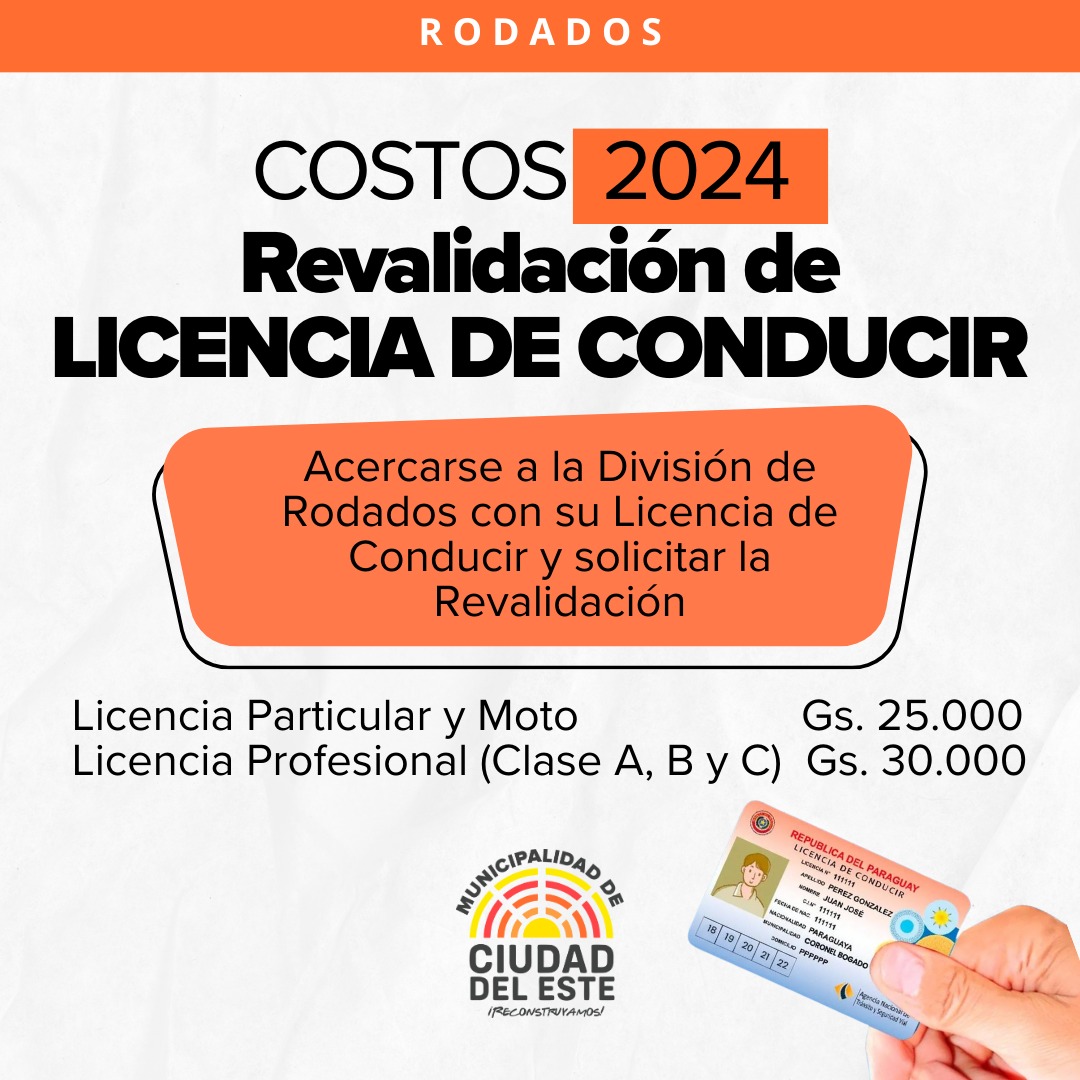 La Municipalidad de Ciudad del Este, a través de la Dirección de Recaudaciones, socializa los requisitos y tarifas para la expedición de licencias de conducir y habilitaciones de vehículos, con el objetivo de informar a la comunidad acerca de los procedimientos necesarios y los costos.