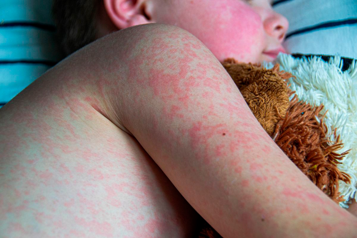 El sarampión es una enfermedad viral altamente contagiosa que se transmite por gotas respiratorias al toser o estornudar, así como por gotitas suspendidas en el aire. Sus principales síntomas son fiebre alta, erupción cutánea que se expande desde la cabeza hacia el tronco y extremidades, tos, conjuntivitis y secreción nasal. El periodo de incubación varía de 7 a 18 días para la fiebre y de 10 a 21 días para la aparición del exantema. La transmisibilidad comienza entre 2 y 3 días antes de los síntomas respiratorios y se prolonga hasta 4 a 6 días después de la erupción.