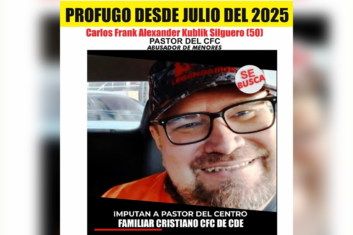 A más de seis meses de haberse ordenado su detención preventiva, Carlos Frank Alexander Kublik Silguero, pastor vinculado al Centro Familiar Cristiano (CFC), continúa prófugo de la justicia en el marco de una causa por supuesto hecho punible contra niños y adolescentes.