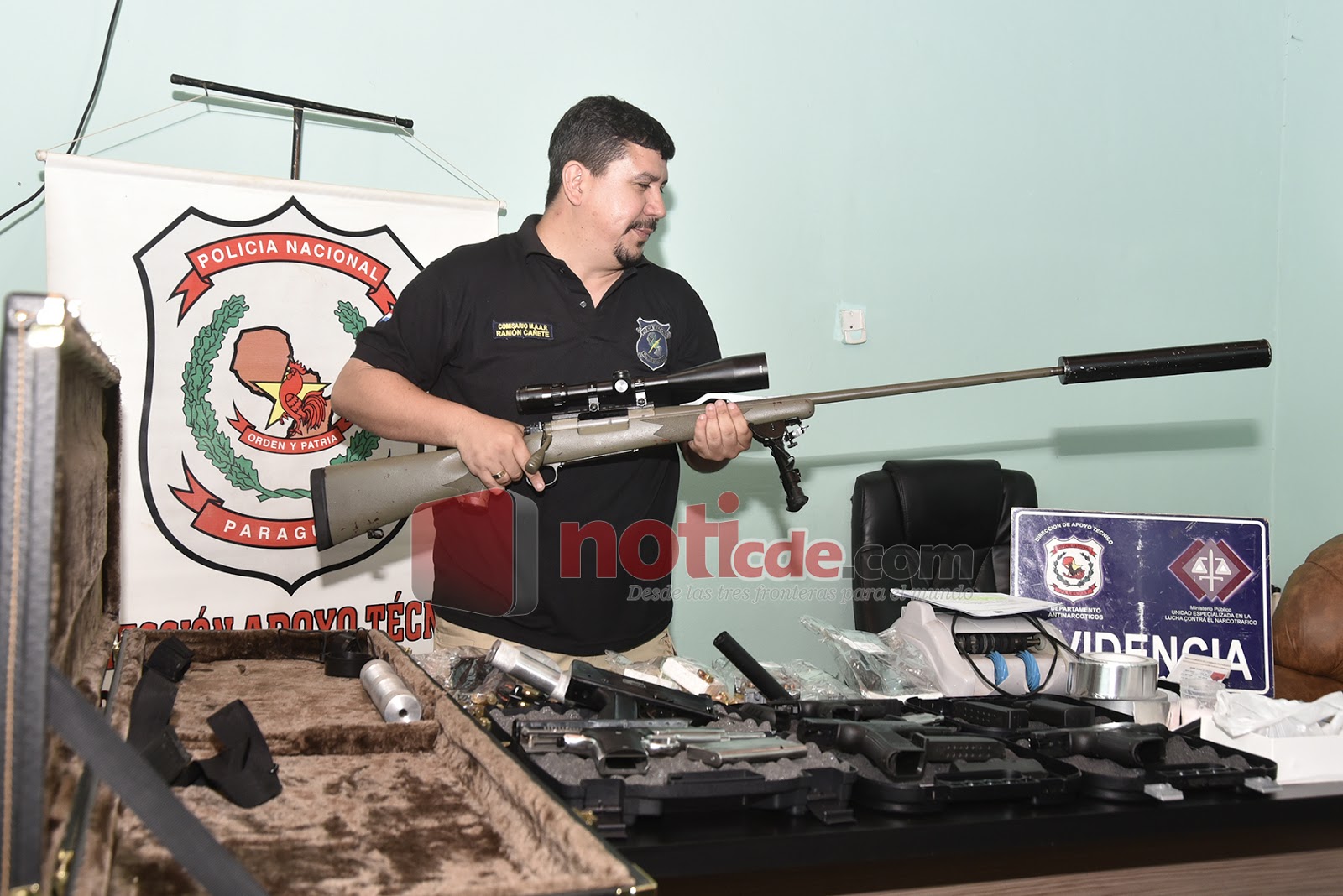 Una comitiva de la Fiscalía Antidrogas y agentes del Departamento Antinarcóticos de la Policía Nacional requisó 70 gramos de cocaína, 105 gramos de marihuana y gran cantidad de armas de gruesos calibres del apartamento del oriental, ubicado en el primer piso del edificio Globo Center, situado entre Pa’i Pérez y Adrián Jara del centro de Ciudad del Este. Fue durante un allanamiento efectuado este 6 de diciembre último, a las 17:50 horas aproximadamente.