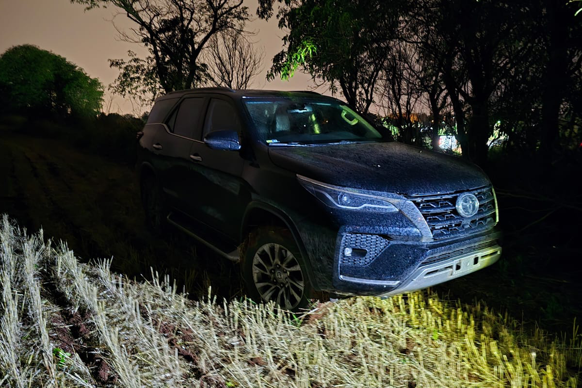 El vehículo es una Toyota Fortuner, color negro, año 2021, que al momento del procedimiento no contaba con chapa colocada. Fue hallado abandonado en la cabecera de una plantación de soja, tras un operativo de inteligencia y cierre realizado por agentes del Departamento de Investigaciones del Alto Paraná.