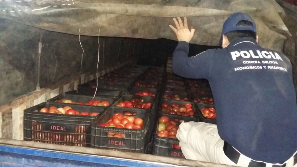 Durante una fiscalización de rutina, agentes del Departamento Contra Delitos Económicos de la Policía Nacional y funcionarios del Departamento Técnico Aduanero de Vigilancia Especializada (DETAVE), requisaron en la noche de este miércoles 20 toneladas de tomate en el puesto de control del kilómetro 60 de la ruta 7.