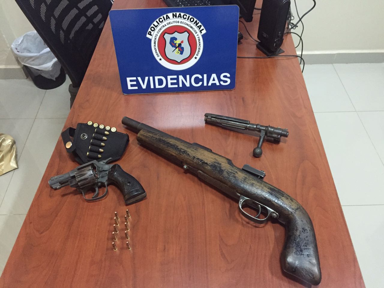 Agentes del Departamento Contra Delitos Económicos y Financieros, requisaron en la mañana de este miércoles un fusil calibre 7.65, recortado, sin número de serie, que estaba en poder de un hombre que se desempeña como seguridad privada en un comercio localizado en el barrio La Blanca de Ciudad del Este. Un revolver calibre 22 también fue incautado por los policías.