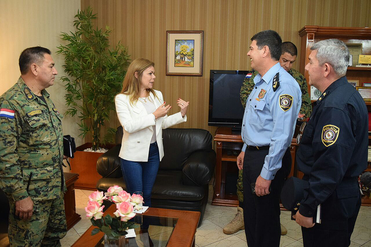 Estuvieron reunidos con la intendente el Director de la Dirección General de Apoyo Táctico, comisario general Enrique Isasi, el Director de la 4ª Zona Policial; comisario general Tomás Cristaldo; el Jefe de Policía de Alto Paraná, comisario Principal Fidel Godoy Elli y el Jefe de Orden y Seguridad, comisario Principal Abilio Lezcano.