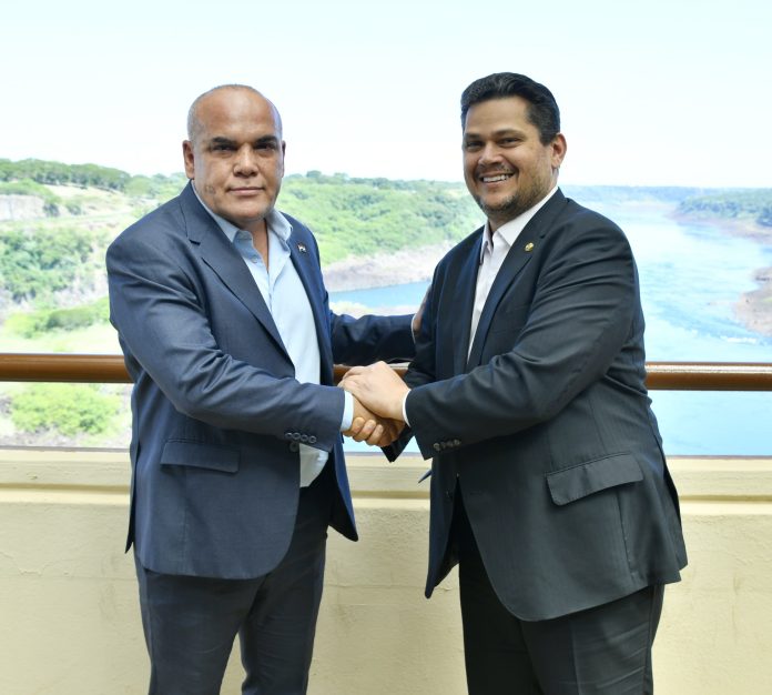 Este viernes 11 de abril, los presidentes del Congreso Nacional de Paraguay, senador Basilio Núñez, y del Senado Federal de Brasil, senador Davi Alcolumbre, fueron recibidos en la sede de la Central Hidroeléctrica Itaipú por los directores generales de ambas márgenes: Justo Zacarías Irún, por Paraguay, y Enio Verri, por Brasil.